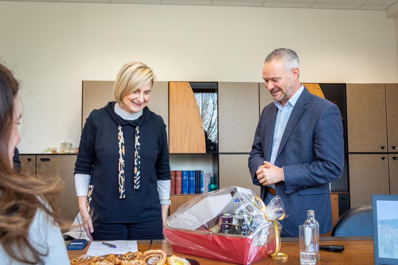 Naast het overleg op het lokaal bestuur stond ook een bezoek aan het vernieuwde PVT Andreas op het programma. Als minister van Samenleving en Inburgering toont Crevits bijzondere belangstelling voor de sterke inbedding van genormaliseerd, herstelgericht zorgwonen in onze gemeenschap. De nieuwe campus, midden in het dorp, biedt bewoners een warme, kleinschalige woonomgeving die tegelijk aansluiting zoekt met het lokale leven.